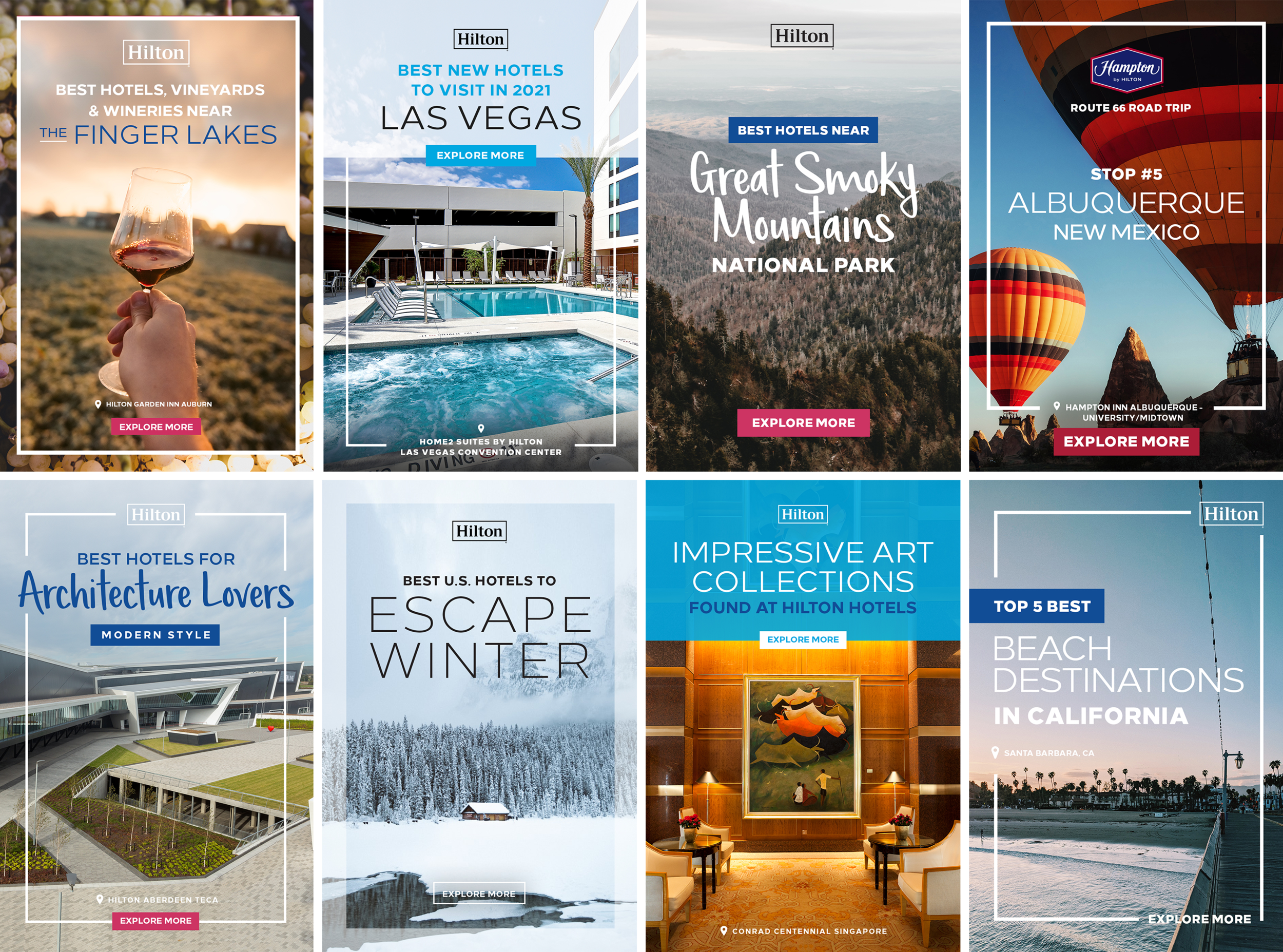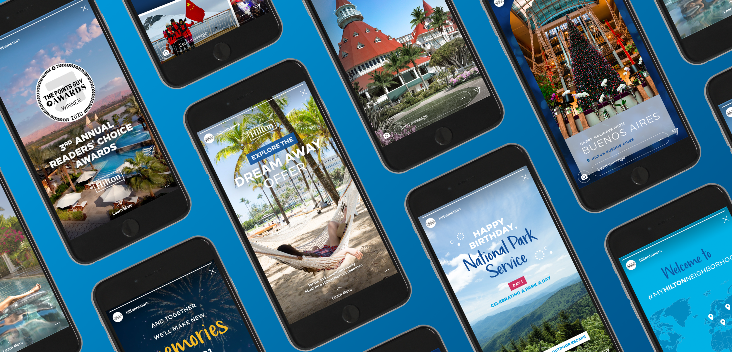 Without any budget to proceed with agencies, our in-house social team took over the main channels for Hilton honors and Hilton Hotels. Another adjustment we dealt with was the ever-changing travel restrictions around the world. We kept close track of current news and which countries we could or couldn’t feature. We had to be flexible and focus on the “now,” not just in the assets we’re creating but in our day to day as well.